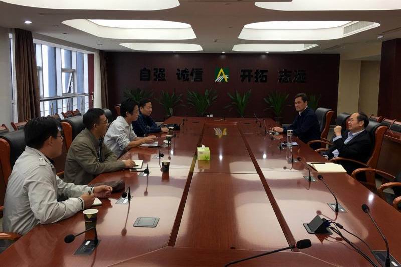 1024,安徽日报报业集团副总编辑李友国偕经济安徽农垦集团主任张尚稳、记者范克龙、农村版总编陈伟一行,调研指导农垦宣传工作。安徽农垦集团党委书记、董事长詹先豪及办公室负责人与李友国一行进行了深入座谈。