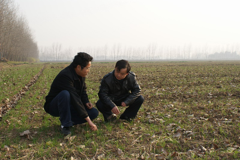 1129,大圹圩农场总农艺师童俊带领生产技术部门负责人深入田间地头,有重点地对各农管区小麦墒情和出苗情况进行调查了解。经田间调查,目前,全场绝大部分播后及时灌水的麦田,苗情较好。针对部分灌水较早和播种后未灌水田块出现的较重旱情,童俊要求,各农业单位要进一步加大抗旱保苗力度,结合当前天气形势和麦田墒情、苗情,加强农技指导督促,因地因苗制宜,及时采取墒沟洇灌的方式,积极应对当前麦田旱情,努力造墒促齐苗、育壮苗。