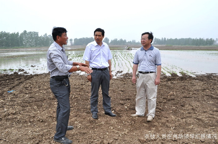 6月21日,潘村湖农场场长柏华胜、党委书记林贤传再次来到第二农管区四分场旱改水现场检查指导工作。