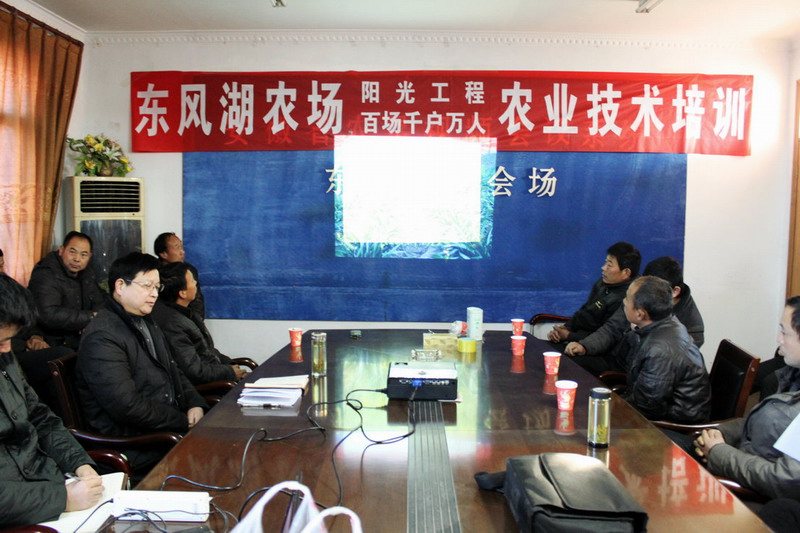 东风湖农场秋冬连旱对在地小麦生长造成了很大影响,为助力午季丰产丰收,在抓好水利冬修的同时,近日举办了2014年首期阳光工程、百场千户万人农技培训班,为全场科技示范户集体充电