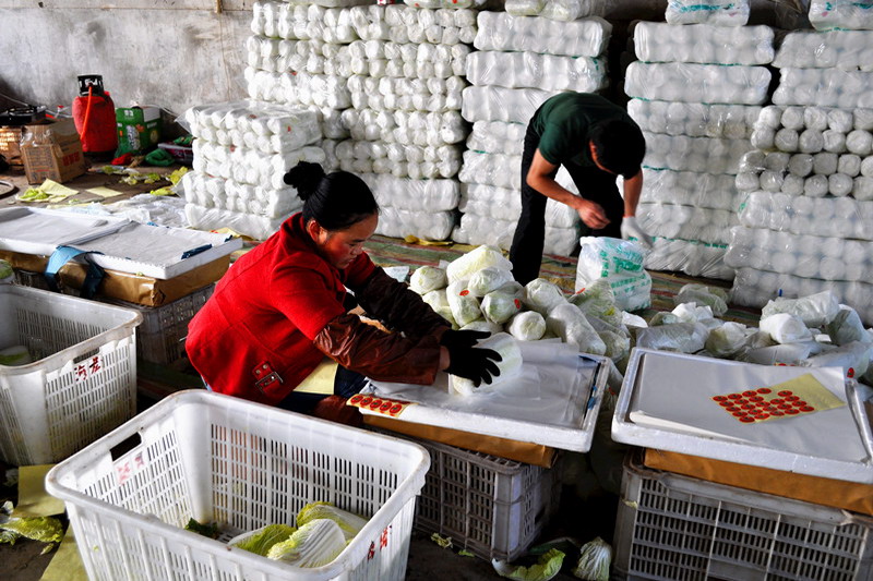 近年来,潘村湖农场通过订单生产、农超对接的模式大力发展果蔬种植业,今年种植的300亩订单娃娃菜于近日开始采摘上市1113日,几名职工正在对刚收获的娃娃菜进行精包装,按照预定流程,这批新鲜娃娃菜将在第二天出现在南京、合肥等多家大型超市。据种植户介绍,亩均效益超过4000元,较种植常规作物提高约4倍。(杨登宏)