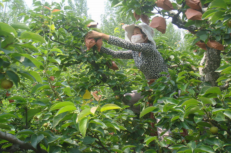 砀山果园场:中晚熟梨套袋收尾