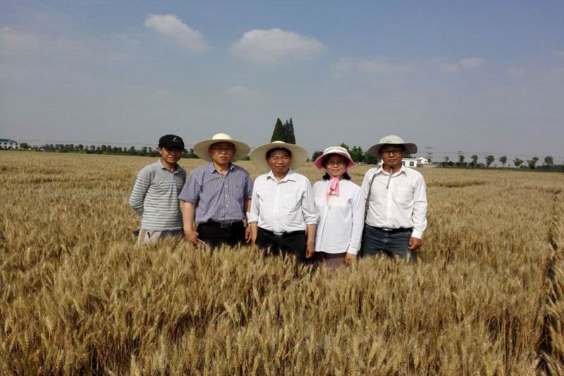 贾继增一行走进潘村湖农科所试验田,现场观察并详细询问了小麦新品种试验过程及效果,重点察看了中作所257个小麦新品系鉴定材料在试验田的适应性、长势长相和综合抗性。贾继增研究员边看边问,仔细检查了农技人员所作的田间记载情况,以及对表现较好品系材料进行的不同标注。