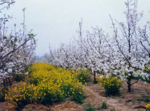 “忽如一夜春风来,千树万树梨花开”。砀山果园 场万亩梨园竞相开放,一望无际,如雪如霞,煞是 好看。