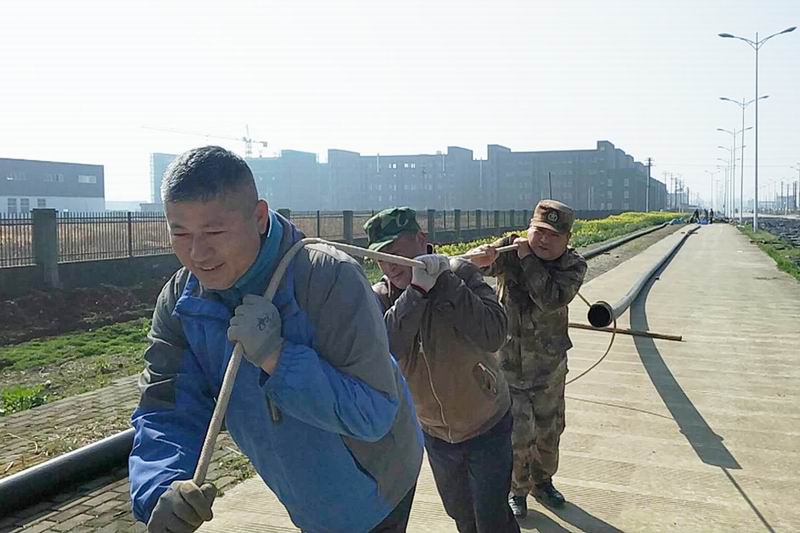 310,华阳河水电公司经营服务部员工前往宿松县临江产业园,为皮革城安装自来水,抢抓晴好天气组织施工,探路走出农场增效益。