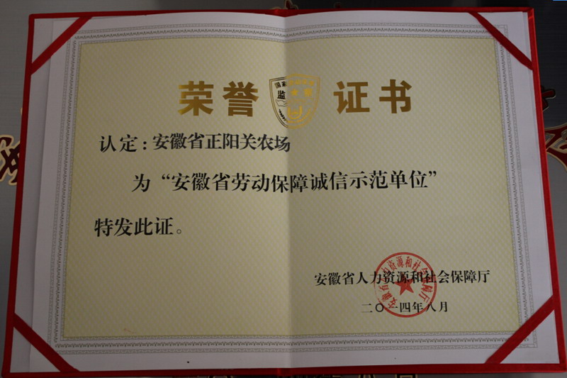近日,安徽正阳关农场获评全省劳动保障诚信示范单位。近年来,该农场深入开展劳动保障诚信示范创建工作,从规范签订履行劳动合同、社会保险参保、技术人员持证上岗、女职工特殊保护等方面入手,引导基层单位和广大职工树立依法用工、守法经营的意识,为保障企业及职工合法权益、构建和谐劳动关系提供了有力保障。