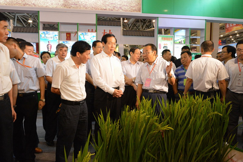 30日上午,省委书记张宝顺、省长王学军,农业部副部长陈晓华,省委副书记李锦斌、副省长梁卫国等领导同志先后巡视了农垦展馆。看到皖垦种业展台前精心布置的一片水稻郁郁葱葱,张宝顺、王学军、陈晓华一行驻足观看,并认真听取了李卓民介绍情况。据介绍,皖垦种业通过持续加强优良品种研发和良繁基地、营销网络建设,现已发展成为年产良种超亿公斤的大型种业集团和全国农垦种业的“标杆”之一,示范带动了全省种子产业良性发展。张宝顺仔细倾听,连连点头赞许,勉励安徽农垦及皖垦种业进一步扩大经营成果,发挥示范引领作用,助力全省农业产业化提档升级。