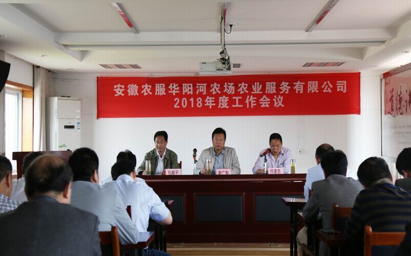 59,华阳河农服公司召开工作会议,敲定了今年工作重点目标任务。董事长谢广和、总经理倪建忠及农服全体员工、场属涉农单位负责人参加会议。