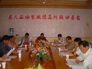 5月28日上午,龙亢农场党委召开转入整改提高阶段 动员会.场长、党委书记做动员讲话,他在通报场党 委民主生活会情况、总结分析评议阶段工作之后, 对全场整改提高阶段的工作提出五点要求。一是制 定整改措施和整改方案。每个党员、基层党组织和 领导班子都要针对群众提出的意见和党组织的评议 意见,民主评议中反映的问题以及自我剖析中查找 出的问题,认真制定整改措施和整改方案。整改措 施和整改方案要充分考虑问题的轻重缓急和难易程 度,既有近期目标,又有中长期安排;既要考虑解 决问题的必要性,又要考虑解决问题的可行性,尽 力而为,量力而行,不提过高的目标和不切实际的 口号。二是扎实抓好整改措施的落实。各级党组 织、各级领导班子和每一名党员都要认真落实经审 定的整改方案和整改措施。各级党组织要将整改任 务进行分解,明确责任单位和完成时间,落实具体 责任人,并对整改情况认真进行督查。对具备整改 条件的问题,要马上整改;对通过努力能够解决的 问题,要限期整改;对那些应该解决但由于受客观 条件限制一时解决不了的问题,要向职工群众说明 情况,积极采取措施逐步整改。 三是向职工群众公 布整改情况。整改提高工作要牢固树立群众观点, 走群众路线,坚持“开门”搞整改。要按照知情参 与原则,采取印发材料、召开会议等形式,在适当 时机、适当范围内通报整改方案和整改措施的落实 情况,让职工群众知道改什么、如何改、何时改、 改的成效。要深入听取职工群众意见,主动接受职 工群众监督,使整改工作始终置于职工群众的监督 之下。四是明确整改提高工作的重点。要围绕改革 发展抓整改、围绕热点难点抓整改、围绕加强党建 抓整改、围绕建立健全保持党员先进性的长效机制 抓整改。在这一阶段,各级党组织要引导党员进一 步增强政治意识、大局意识、发展意识,明确整改 方向。认清自己肩负的责任和使命,强化组织观 念、纪律观念,团结带领广大职工群众,以实际行 动推动本部门本单位的工作,以崭新的风貌投身于 振兴农场的伟大事业。要把抓整改提高与建章立制 结合起来。按照“让党员受教育,使职工得利益” 的要求,建立健全保持党员先进性的长效机制,重 点是党员长期受教育的学习机制、纯洁党员队伍的 管理机制、党员密切联系职工群众的服务机制、加 强和改进党组织建设的工作机制。五是适时组织 “回头看”。一看整改方案和整改措施是否全部落 实;二看党员宗旨意识、群众观念和践行“三个代 表”重要思想的自觉性是否增强;三看党组织的创 造力、凝聚力和战斗力是否得到提高;四看职工群 众反映的热点难点问题是否得到解决;五看保持共 产党员先进性的长效机制是否建立;六看群众满意 度是否达到要求,确保不走过场,取得实效。
