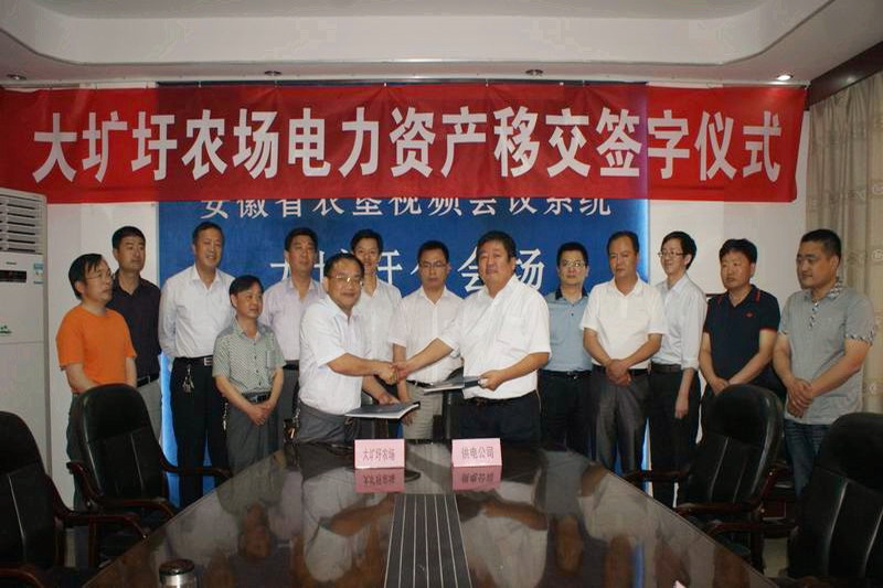 按照安徽农垦集团的统一部署,大圹圩农场去年9月开始启动电力资产移交工作,通过与天长供电公司的密切合作,各项移交工作现已准备就绪,6月6日下午,双方领导班子举行了签约仪式,农场除生产办公以外的电力资产将正式移交给天长供电公司。这是安徽垦区继东风湖农场之后,电力资产移交的第二个正式签约农场。
