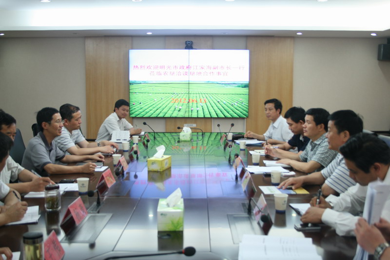 洽谈中,陈仁虎简要介绍了安徽农垦发展现状,重点说明了安徽垦地合作的模式方法和项目成果。江家海对省农垦集团大力支持潘村湖、白米山农场与明光市政府开展项目合作促进共同发展表示感谢。随后,双方就落实省农垦集团与滁州市战略合作框架协议开展项目合作进行了交流研讨,并结合潘村湖、白米山农场与明光市各自优势,共梳理提出了9个合作项目的意向。